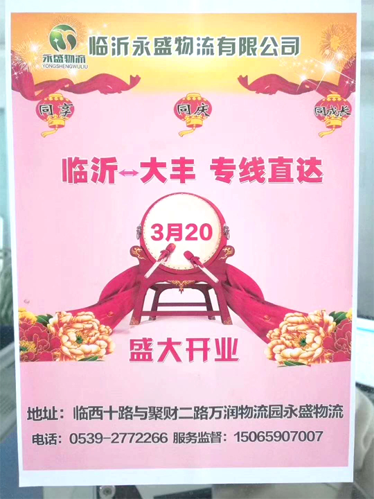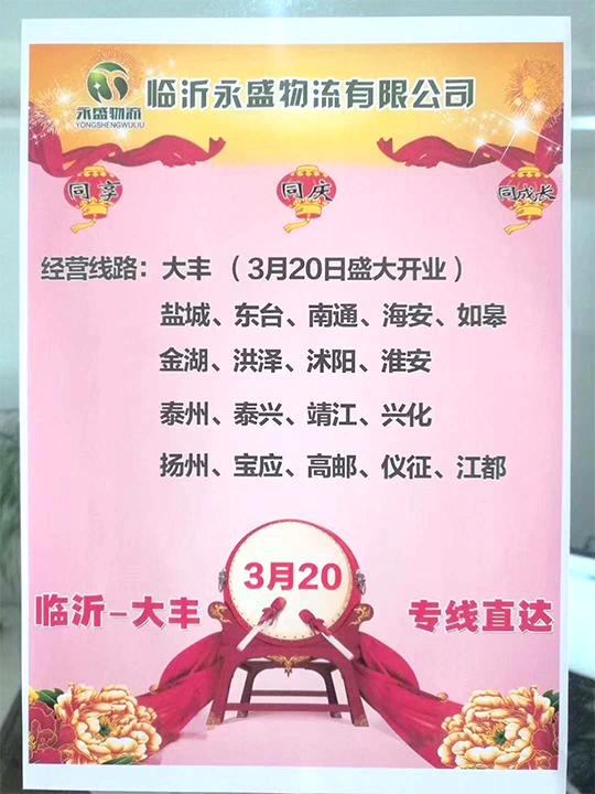 热烈祝贺永盛物流 临沂-大丰 专线盛大开通